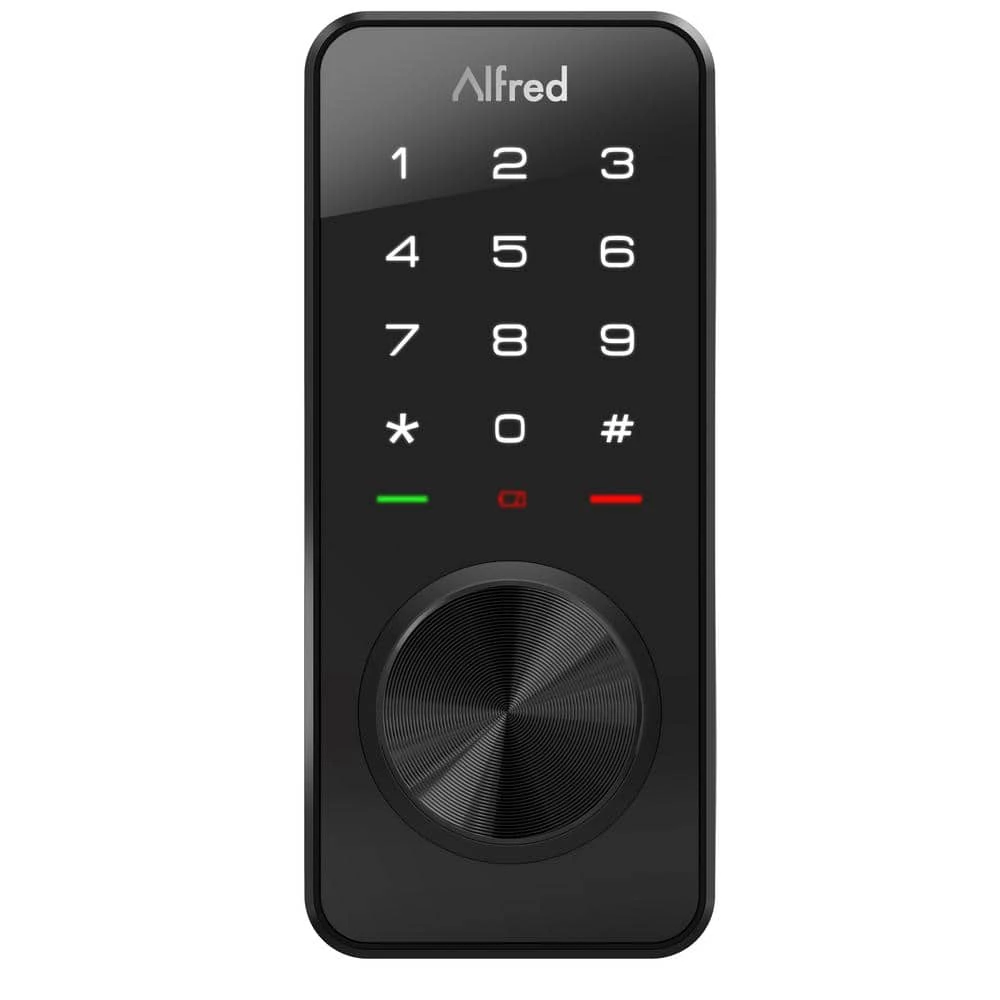 - Alfred DB1-A model features a glass touchscreen keypad and key override (see DB1 or DB1-C model if you want to go keyless)