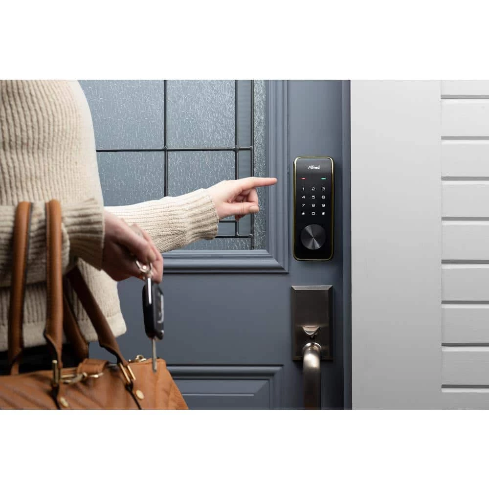 Secure your home with this Alfred DB2-B Gold Smart Electronic Deadbolt Lock. Choose how you want to unlock it, from Google and Alexa prompts, to one-tap unlock, to physical keys. You can create up to 20 pin codes so you can control who has access to your home.