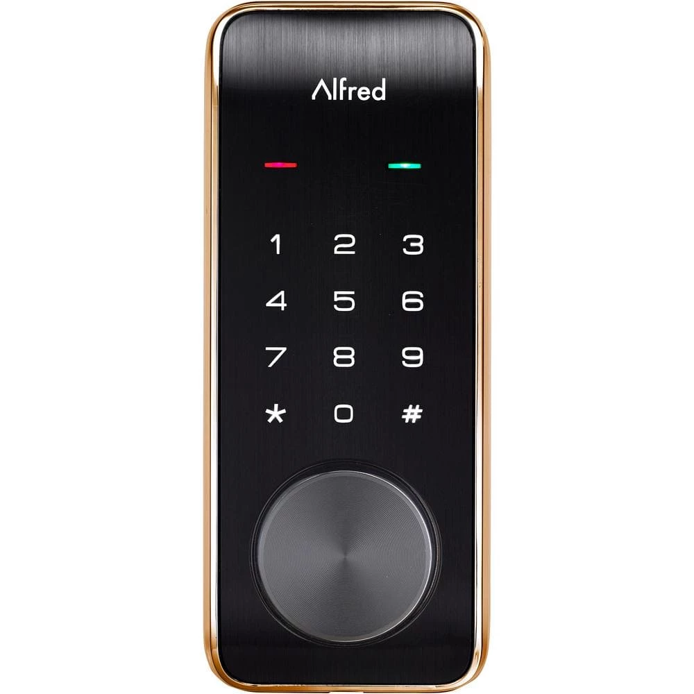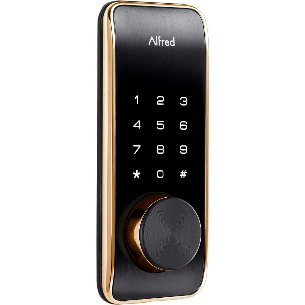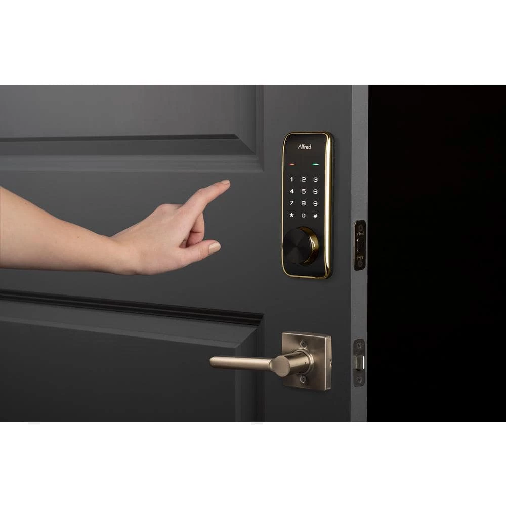 Say hello to our Alfred DB2-B smart touchscreen motorized deadbolt lock which brings together design aesthetic, security and functionality all in 1. This DB2-B model has a Gold designer trim bezel to help match to your existing door hardware. Our DB2 series locks come packed with features including voice prompts in 5 Languages, Away Mode and Auto Relock capabilities. The Alfred DB2-B includes 2 physical keys and an override keyway for those who are looking for a sleek designer focused smart lock but want the peace of mind of a backup key. Utilizes Bluetooth connectivity with the Alfred Home App (iOS and Android) to control and monitor your lock and settings locally from your mobile device. Always know who enters and when, with up to 20 unique pin codes, which can also be programmed as single use, or time sensitive for people like contractors or dog walkers. You can create unlimited digital Bluetooth keys that can be shared with friends, family or even renters, within the Alfred Home App even when you’re not home. Our locks are designed to be DIYer friendly and we have partnered with BILT to provided full digitally illustrated install instructions for an easy install process. Alfred DB2-B Series locks are also available in black or chrome to match your homes style. Introducing Alfred part butler, part bouncer.