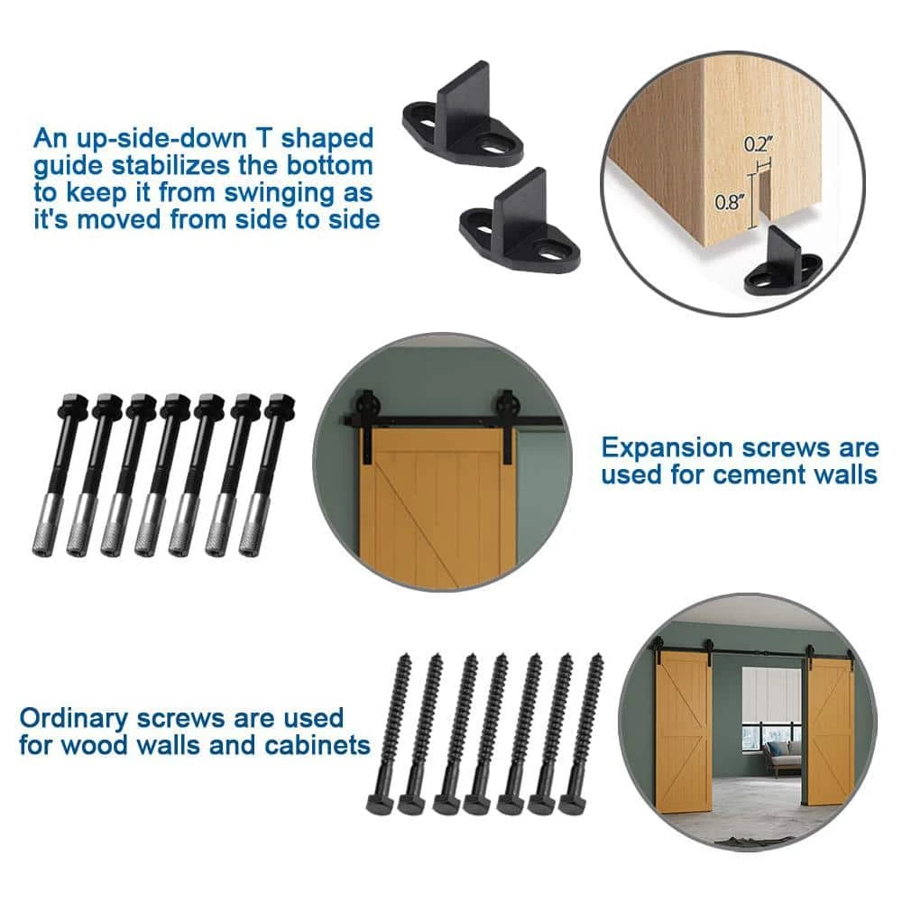 - Package included: barn door hardware kit, all assembly hardware is included as you see in the pictures, door not included