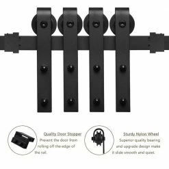This sliding door hardware is made of high quality steel in high temperature fine black powder coated surface ensures anti-corrosion and years of beauty and longevity. The modern twist on the classic barn door not only saves space, it allows the ability to open up multiple rooms. Suitable for indoor decoration in kitchen, bedroom, dressing room, club, pub and so on. Waterproof and rust resistant tract kit also a nice door accessory for barns, garages, stables, etc.