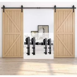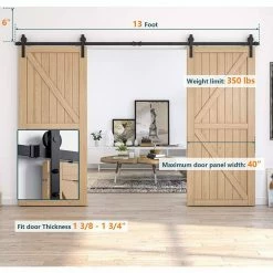 - Pre-install notice: only the hardware is for sale, doors are not included the hardware package has lag bolts for wooden wall/drywall/concrete wall our sliding barn door hardware kit are compatible with door thickness from 1-3/8 in. to 1-3/4 in. if you have a door trim, you would better put a header board that is as thick as the trim and then attach the rail to the header board you need to have at least 5 in. of space between the top of the door to the ceiling to accommodate the hardware we use 2 hangers to hold 1-door, for a single door kit, there will be 2 hangers in the package, for a double door kit, there will be 4 hangers, if you have a door that is either too wide or too heavy, then you can purchase additional hangers for that door