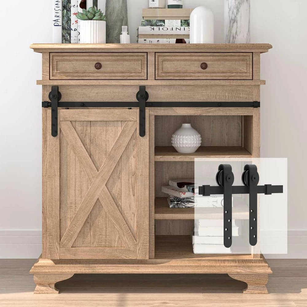 This sliding door hardware is made of high-quality steel and nylon wheels in high temperature fine black powder-coated surface ensure anti-corrosion and years of beauty and longevity. Use with single cabinet or small furniture doors. Lifestyle images shown are various applications for the mini barn door hardware and may not represent the actual door hanger style purchased.