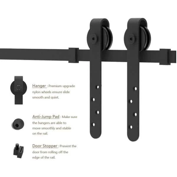 - Package included: barn door hardware kit, (1 x 3 ft. rail, 2 x anti-jumpers, 2 x rollers, 2 x door stopper, 2x rubber end, 2 x floor guide, 3 x wall spacer, 3 x lag bolt, 1 x hex key, 8 x short door bolt) all assembly hardware is included as you see in the pictures, door not included
