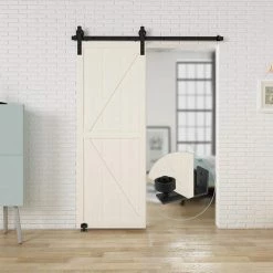 - Easy to use: mount to the wall with screws and no groove required for door, by adjusting the position of the roller in the track to fit your door panel, no need to drill holes in the floor and it looks great both indoors and outdoors