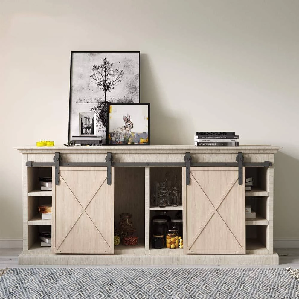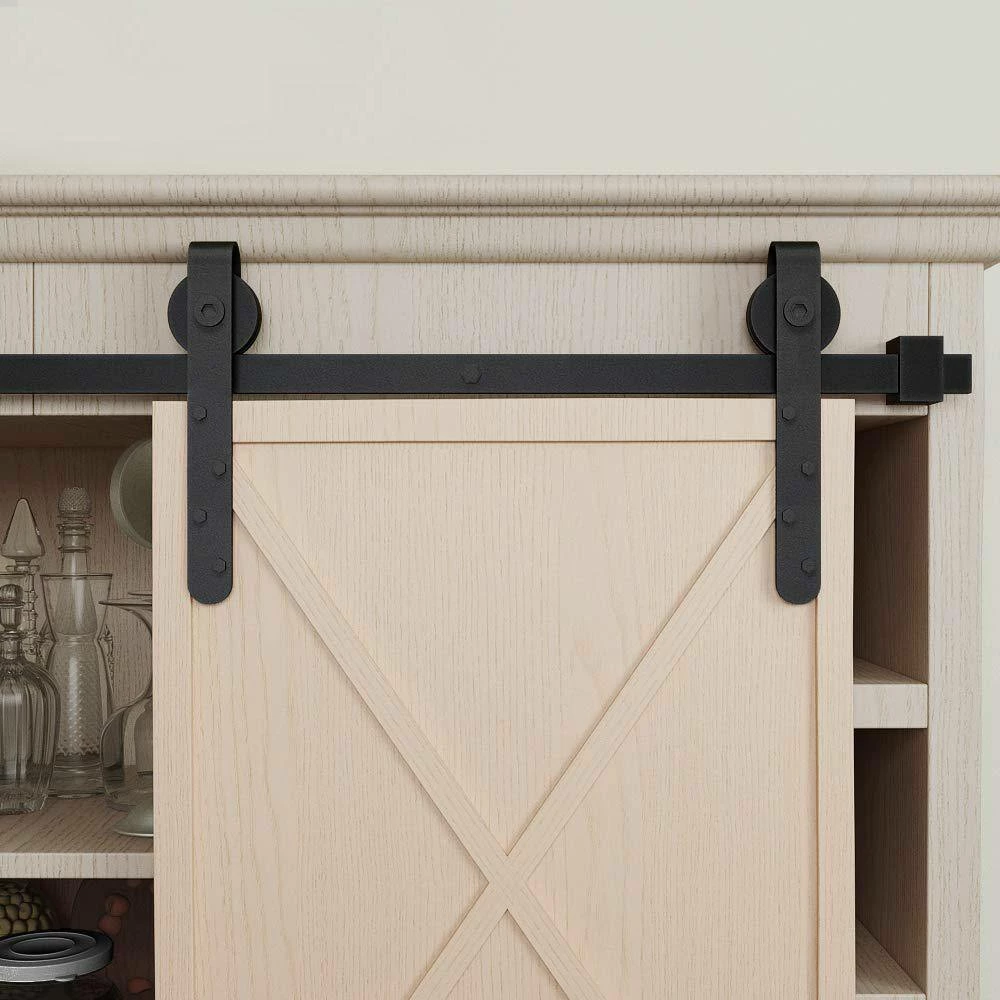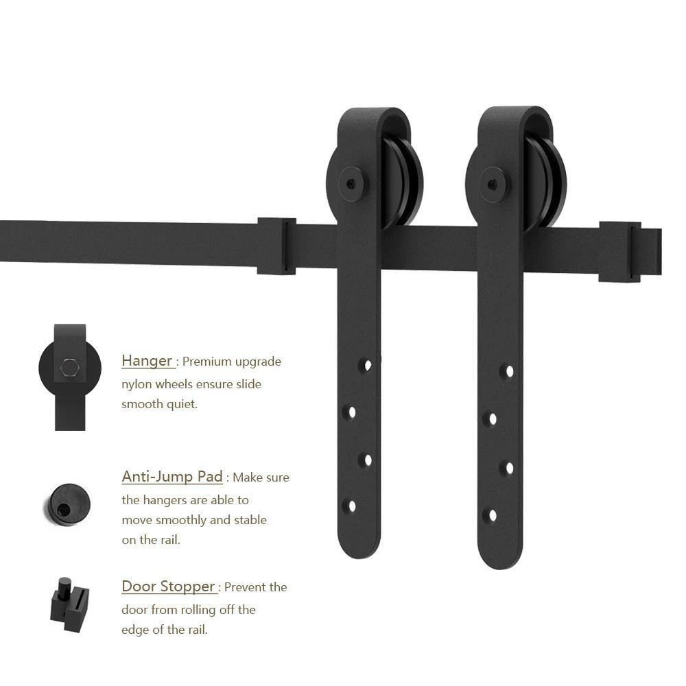 - Pre-install notice: only the hardware is for sale, doors are not included, the hardware package has lag bolts for wooden wall/drywall/concrete wall, our sliding barn door hardware kit is compatible with door thickness from 1/2 in. to 1-1/8 in., if you have a door trim, you would better put a header board that is as thick as the trim and then attach the rail to the header board, you need to have at least 3.5 in. of space between the top of the door to the ceiling to accommodate the hardware, we use 2 hangers to hold 1 door, for a single door kit, there will be 2 hangers in the package, for a double door kit, there will be 4 hangers, if you have a door that is either too wide or too heavy, then you can purchase additional hangers for that door