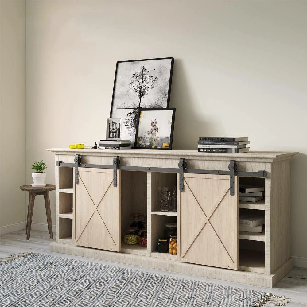 This sliding door hardware is made of high quality steel in high temperature fine black powder coated surface ensures anti-corrosion and years of beauty and longevity. The modern twist on the classic barn door not only saves space, it allows the ability to open up multiple rooms. Suitable for indoor decoration in kitchen, bedroom, dressing room, club, pub and so on. Waterproof and rust resistant tract kit also a nice door accessory for barns, garages, stables, etc.