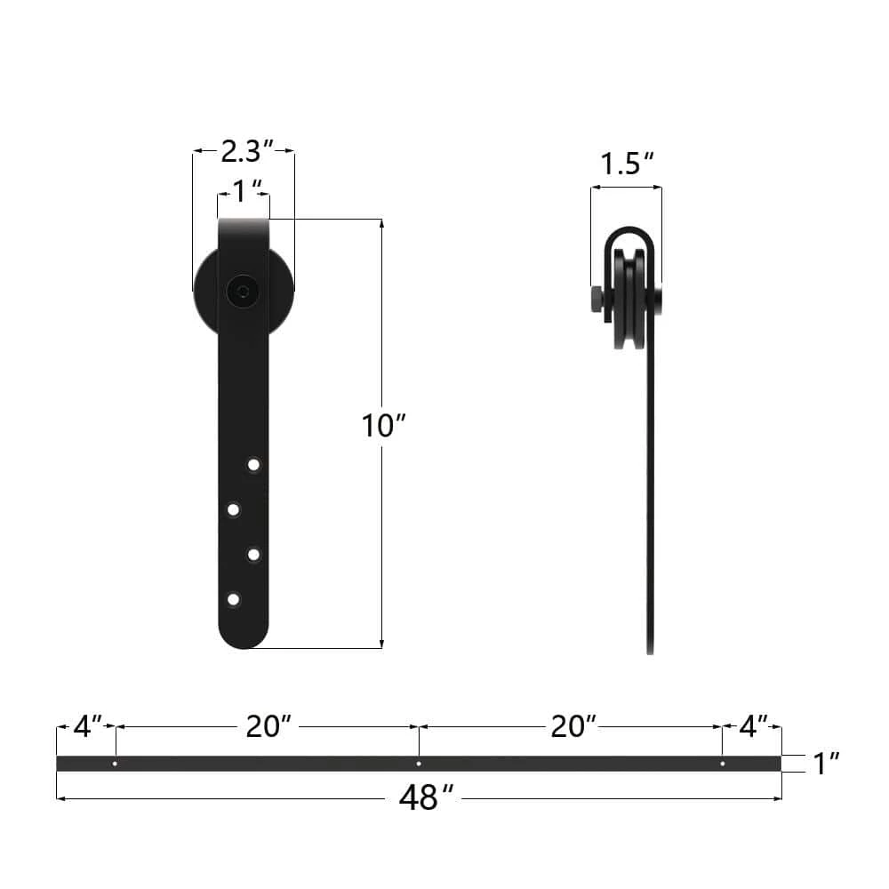 - Package included: barn door hardware kit, (1 x 4 ft. rail, 3 x rail spacers, 4 x rollers, 4 x door stops, 4 x end caps, 4 x guide rollers, 1 x hex key) all assembly hardware is included as you see in the pictures, door not included
