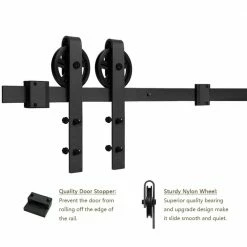 This sliding door hardware is made of high quality steel in high temperature fine black powder coated surface ensures anti-corrosion and years of beauty and longevity. The modern twist on the classic barn door not only saves space, it allows the ability to open up multiple rooms. Suitable for indoor decoration in kitchen, bedroom, dressing room, club, pub and so on, waterproof and rust resistant tract kit also a nice door accessory for barns, garages, stables, etc.