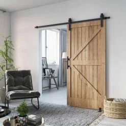 This sliding door hardware is made of high quality steel in high temperature fine black powder coated surface ensures anti-corrosion and years of beauty and longevity. The modern twist on the classic barn door not only saves space, it allows the ability to open up multiple rooms. Suitable for indoor decoration in kitchen, bedroom, dressing room, club, pub and so on. Waterproof and rust resistant tract kit also a nice door accessory for barns, garages, stables, etc. Comes with Black Powdered Pull and Flush Sliding Barn Door Handle.