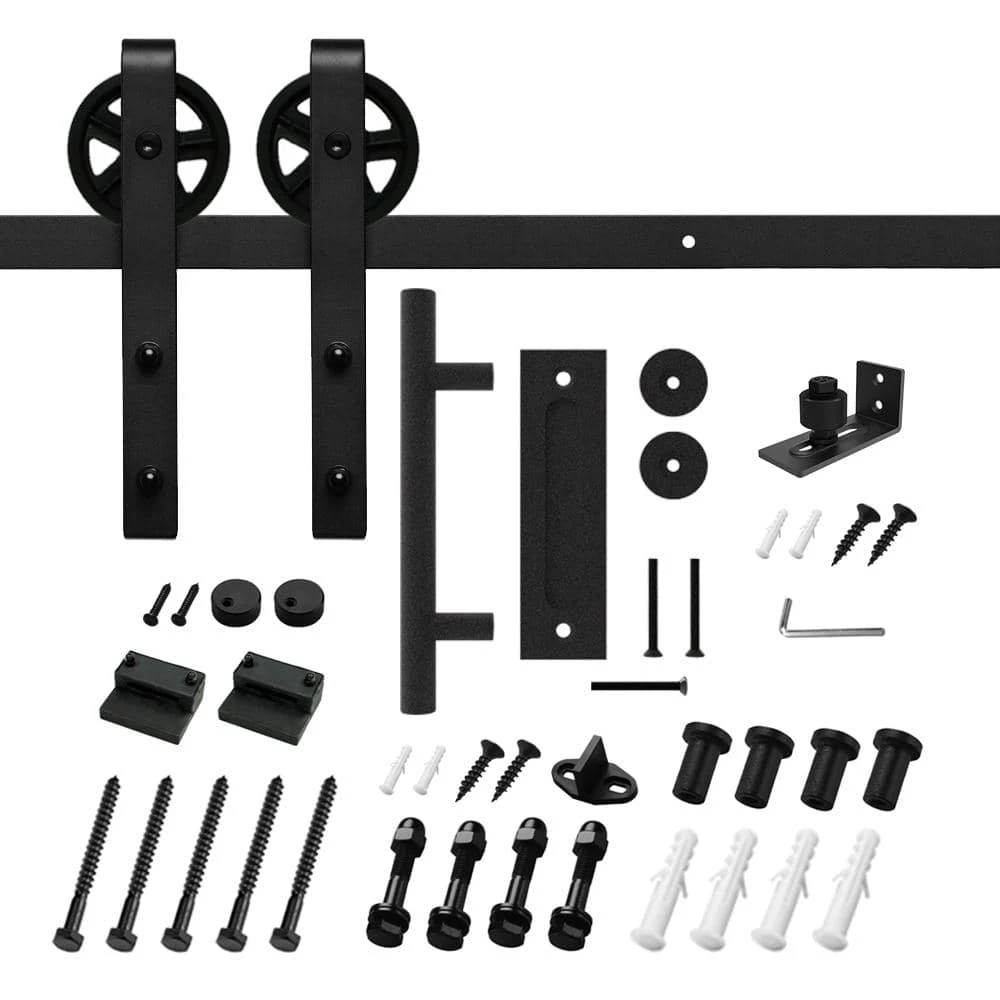 This sliding door hardware is made of high quality steel in high temperature fine black powder coated surface ensures anti-corrosion and years of beauty and longevity. The modern twist on the classic barn door not only saves space, it allows the ability to open up multiple rooms. Suitable for indoor decoration in kitchen, bedroom, dressing room, club, pub and so on. Waterproof and rust resistant tract kit also a nice door accessory for barns, garages, stables, etc. Comes with 12 in. Black Powdered Pull and Flush Sliding Barn Door Handle.