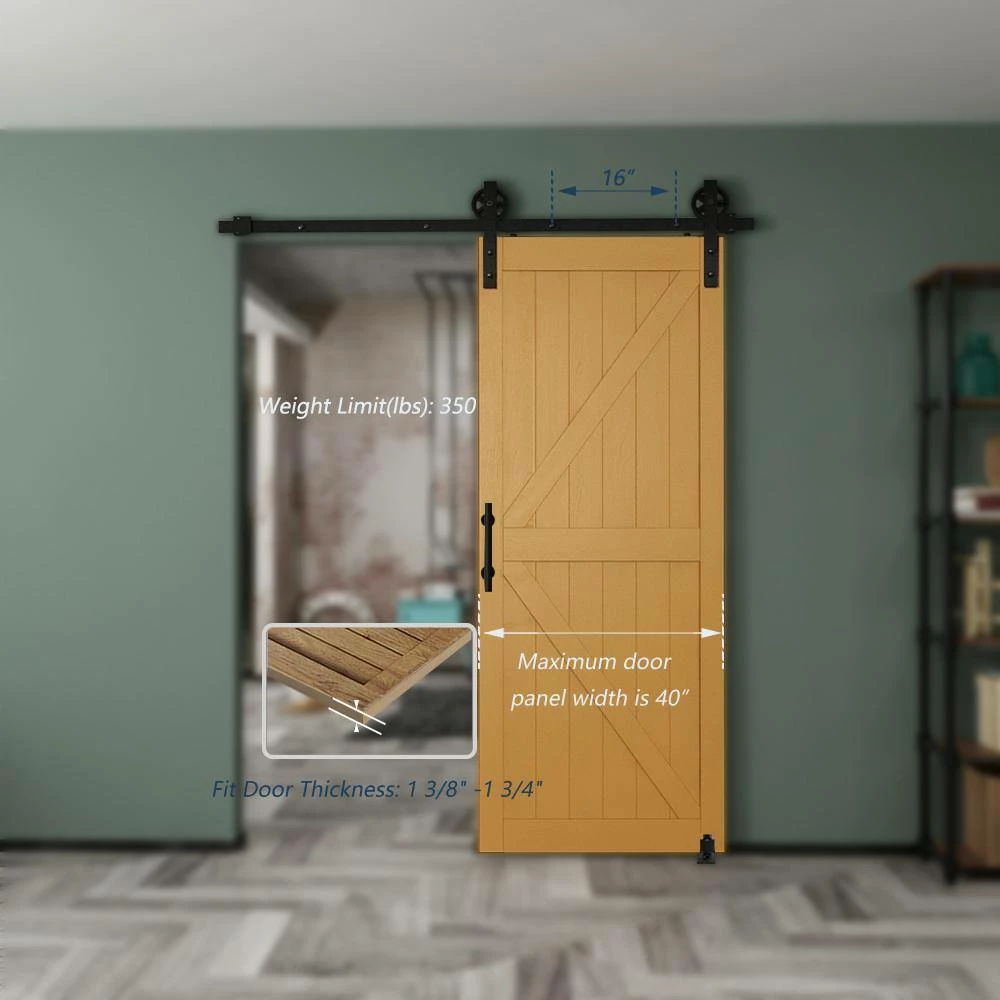 - Pre-install notice: only the hardware is for sale, doors are not included, the hardware package has lag bolts for wooden wall, our sliding barn door hardware kit is compatible with door thickness from 1-3/8 in. to 1-3/4 in. if you have a door trim, you would better put a header board that is as thick as the trim and then attach the rail to the header board, you need to have at least 8 in. of space between the top of the door to the ceiling to accommodate the hardware, we use two hangers to hold one door, for a single door kit, there will be two hangers in the package, for a double door kit, there will be four hangers, if you have a door that is either too wide or too heavy, then you can purchase additional hangers for that door