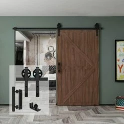 This sliding door hardware is made of high quality steel in high temperature fine black powder coated surface ensures anti-corrosion and years of beauty and longevity. The modern twist on the classic barn door not only saves space, it allows the ability to open up multiple rooms. Suitable for indoor decoration in kitchen, bedroom, dressing room, club, pub and so on. Waterproof and rust resistant tract kit also a nice door accessory for barns, garages, stables, etc. Comes with Black Powdered Pull and Flush Sliding Barn Door Handle.