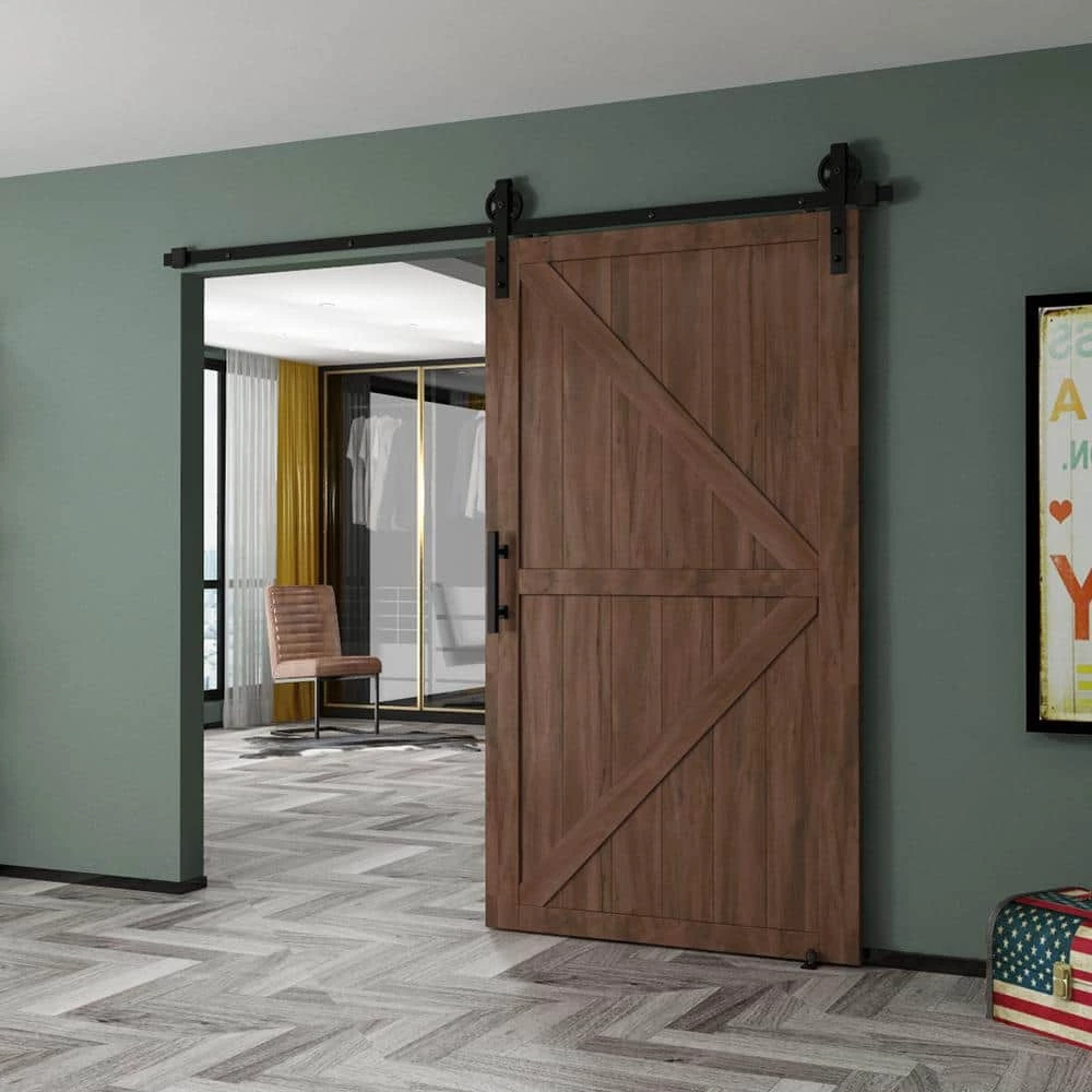 - Pre-install notice: only the hardware is for sale, doors are not included, the hardware package has lag bolts for wooden wall, our sliding barn door hardware kit is compatible with door thickness from 1-3/8 in. to 1-3/4 in. if you have a door trim, you would better put a header board that is as thick as the trim and then attach the rail to the header board, you need to have at least 8 in. of space between the top of the door to the ceiling to accommodate the hardware, we use two hangers to hold one door, for a single door kit, there will be two hangers in the package, for a double door kit, there will be four hangers, if you have a door that is either too wide or too heavy, then you can purchase additional hangers for that door