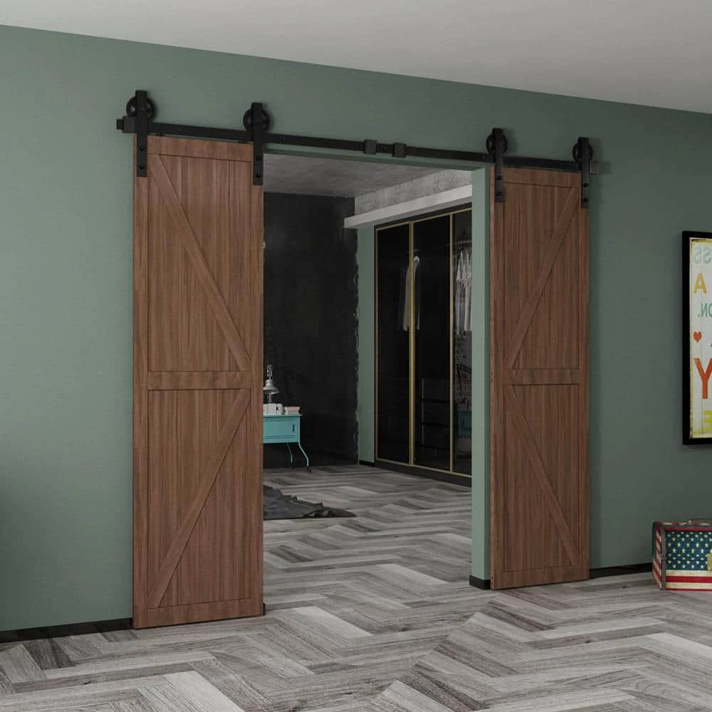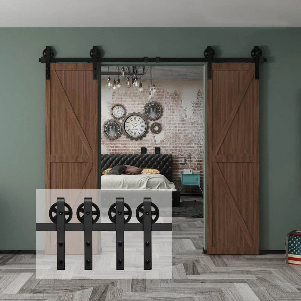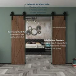 This sliding door hardware is made of high quality steel in high temperature fine black powder coated surface ensures anti-corrosion and years of beauty and longevity. The modern twist on the classic barn door not only saves space, it allows the ability to open up multiple rooms. Suitable for indoor decoration in kitchen, bedroom, dressing room, club, pub and so on. Waterproof and rust resistant tract kit also a nice door accessory for barns, garages, stables, etc.