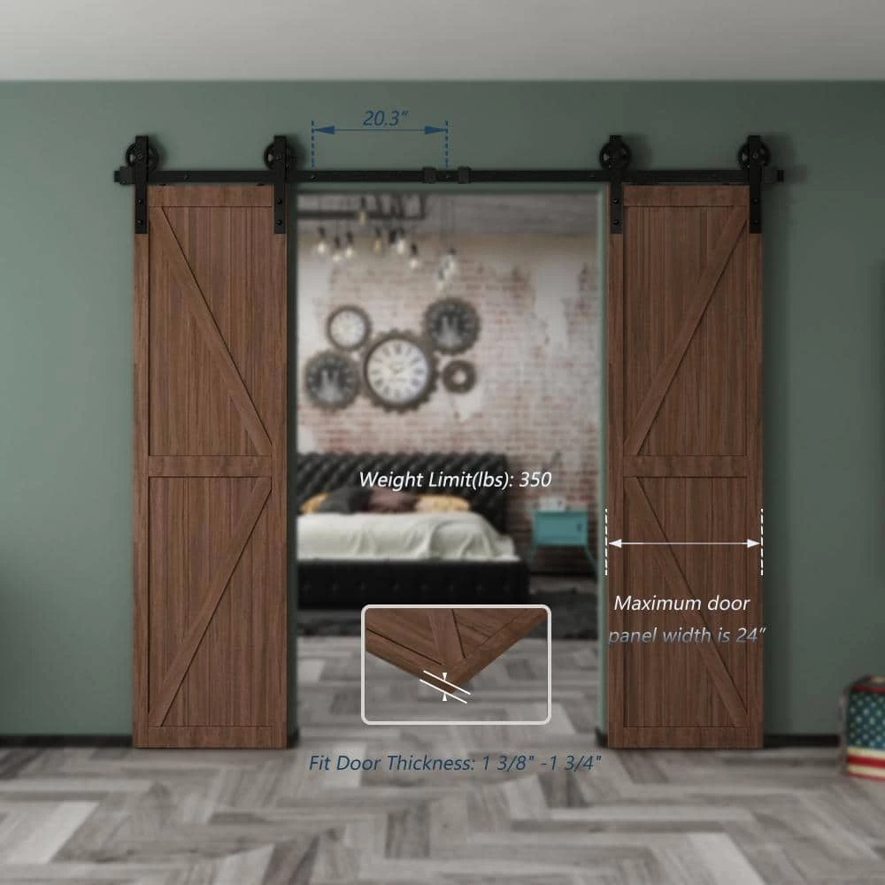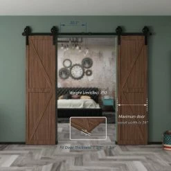- Pre-install notice: only the hardware is for sale, doors are not included the hardware package has lag bolts for wooden wall/drywall/concrete wall our sliding barn door hardware kit is compatible with door thickness from 1-3/8 in. to 1-3/4 in. if you have a door trim, you would better put a header board that is as thick as the trim and then attach the rail to the header board you need to have at least 8 in. of space between the top of the door to the ceiling to accommodate the hardware we use 2 hangers to hold 1 door, for a single door kit, there will be 2 hangers in the package for a double door kit, there will be 4 hangers, if you have a door that is either too wide or too heavy, then you can purchase additional hangers for that door