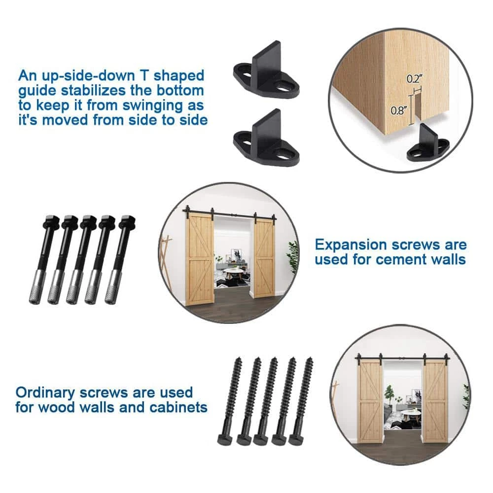- Package included: barn door hardware kit, (2 x 4 ft. rails, 4 x rollers) all assembly hardware is included as you see in the pictures, door not included