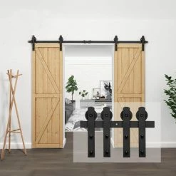 This sliding door hardware is made of high quality steel in high temperature fine black powder coated surface ensures anti-corrosion and years of beauty and longevity. The modern twist on the classic barn door not only saves space, it allows the ability to open up multiple rooms. Suitable for indoor decoration in kitchen, bedroom, dressing room, club, pub and so on. Waterproof and rust resistant tract kit also a nice door accessory for barns, garages, stables, etc.