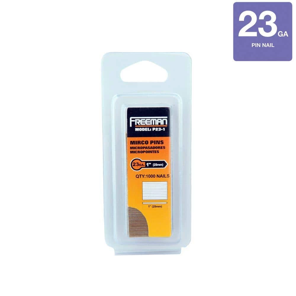 Freeman 1 in. 23-Gauge Pin Nails are an excellent choice for small wood finishing such as decorative trim, picture framing and crafts. Designed to bond small work pieces without splintering or leaving a noticeable entry mark, Freeman Pin Nails should be your first choice for your trim and crafting needs.