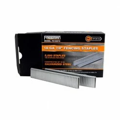 Freeman FS18G78 18-Gauge 7/8 in. Glue Collated Barbed Fencing Staples (5000-count) are ideal for mesh and woven applications such as electrified single wire with insulation, vineyard trellising, snow control fencing, pet enclosures and livestock fencing. A barbed, divergent tip on these solid steel staples ensures maximum holding power for the toughest of indoor and outdoor applications and the galvanization prevents rust and corrosion. These fencing staples are the pinnacle of quality and value and are compatible with most 18-Gauge fencing staplers capable of firing 7/8 in. glue collated fencing staples (excluding DeWalt) such as the Freeman PFS18. Each box includes 5,000 staples to ensure you have plenty of fasteners at your fingertips while on the job.