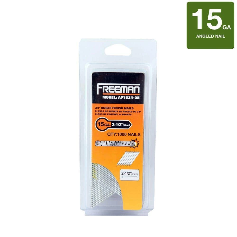 Freeman’s 15-Gauge 2-1/2 in. 34 Galvanized Finish Nails are an excellent choice for your finishing needs. Finish nails are specially designed for finer wood pieces such as cabinets, casements, trim and moldings. These finish nails are the pinnacle of quality and value.