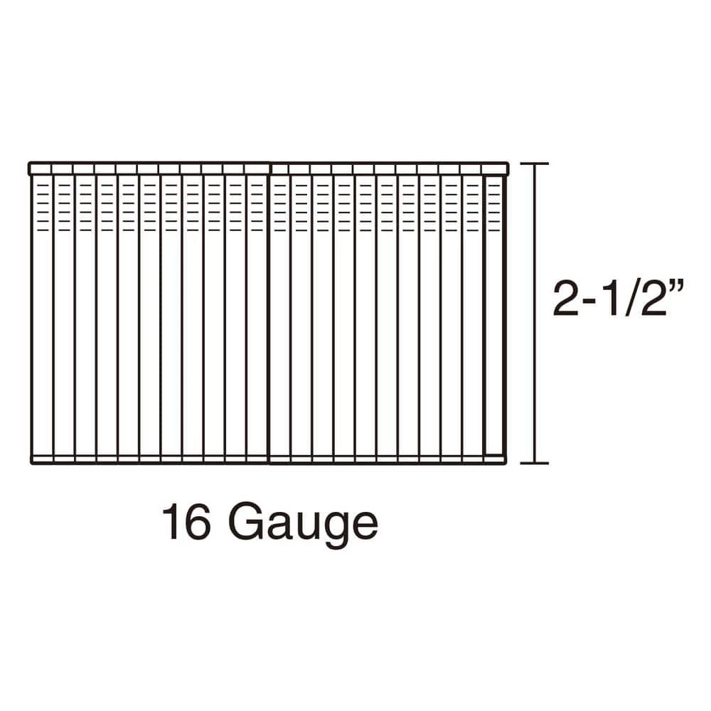 - Compatible with most 16-Gauge nail guns capable of firing 2-1/2 in. glue collated straight finish nails, such as Freeman’s PE20VFN64, PE20VT64, G2FN64, PFN64 and PFN64NQ