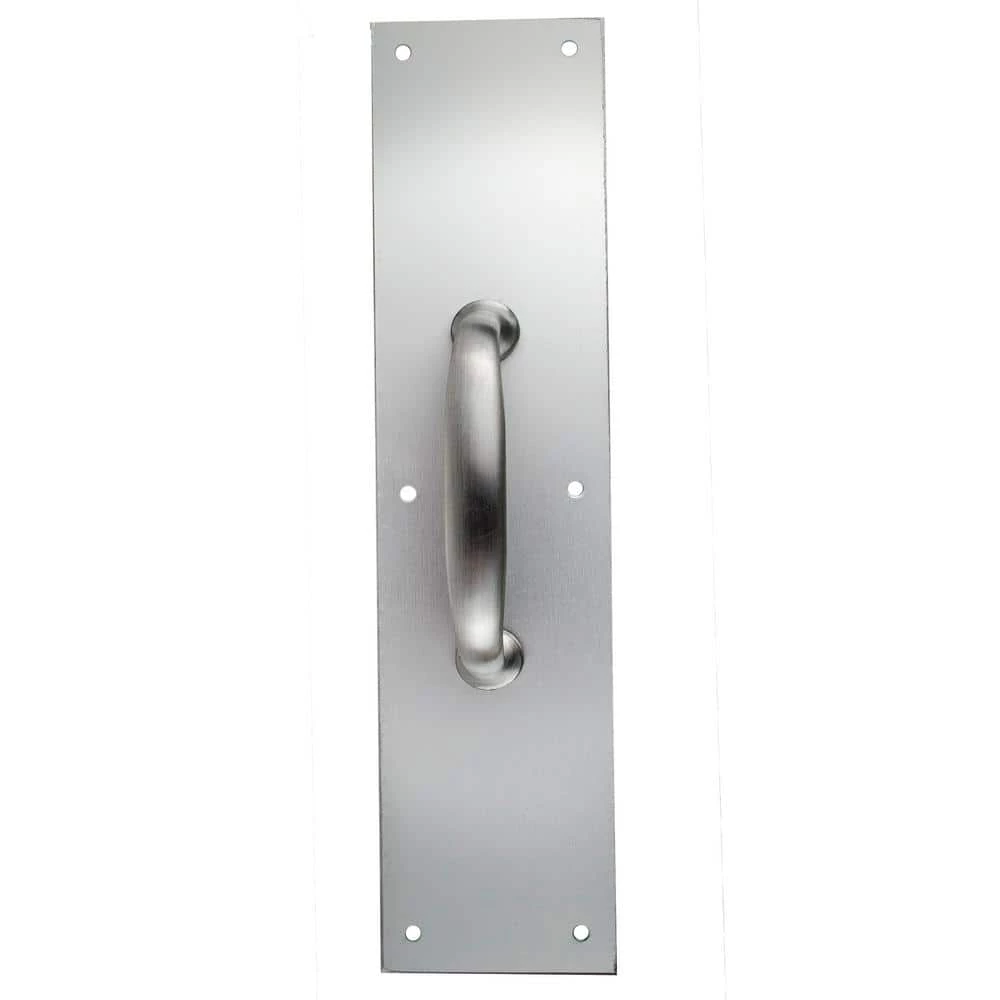Product Description Our ADA Pull Plates are great for commercial doors, adding a decorative accent and protecting the door surface in high traffic areas. Our pull plates are widely popular and can be seen in locations such as movie theatres, small business storefronts, restaurants, schools, and much more. With a dummy handle attached, pull plates are easily cleaned and comfortable to use. Available finishes include Aluminum, Bright Brass, and Stainless Steel and comes in 3 size options. Extremely easy to install and installation hardware included.