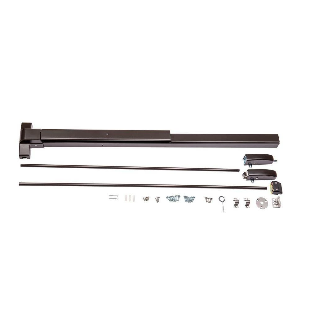 The Trans-Atlantic (Taco) VR531 Series Surface Vertical Rod Panic Exit Device comes in a duronotic finish and is compatible with doors up to 48″ wide, and can be cut as needed for narrower doors. It fits doors 7 feet high, but a 12-inch extension rod (ED-ROD12) is available for purchase. This exit device blends the utility of a vertical rod application with the appearance of a modern style panic device. It is ADA compliant and exceeds ANSI standards for Grade 1, making it the perfect fit for any commercial and industrial applications where heavy usage is anticipated, such as office buildings, retail spaces and hotels. Includes top & bottom latch, but the exterior lever trim is sold separately.