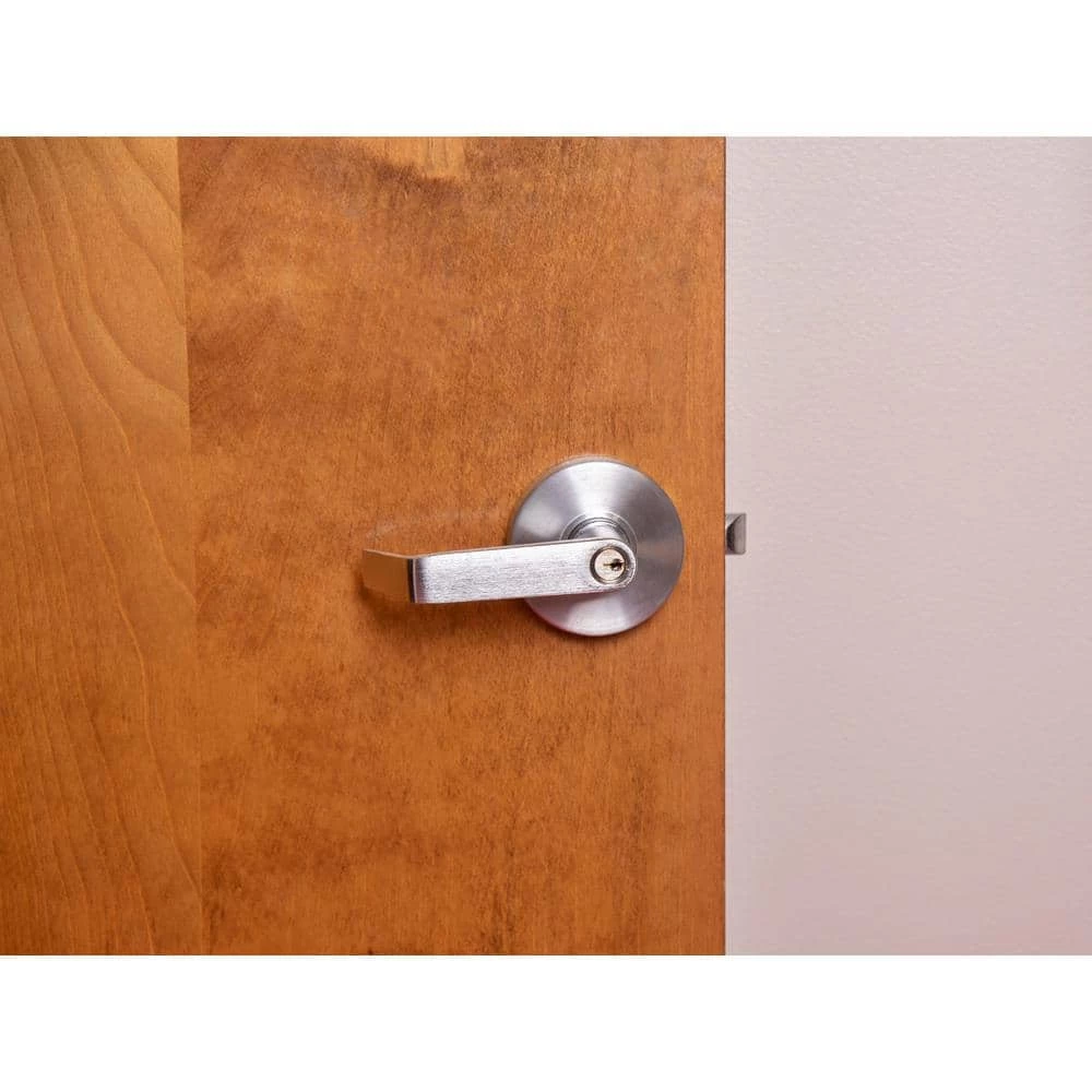 The Trans Atlantic (Taco) LHV cylindrical storeroom leverset comes in a brushed chrome finish and includes an ANSI strike. This storeroom door handle always requires a key to open the door from the outside, the inside remains unlocked. This leverset is ADA compliant and exceeds ANSI standards for Grade 1, making it the perfect fit for commercial, heavy-duty applications. This lockset is prepared for any small format interchangeable core installation for the storeroom cylinder, but the cylinder itself is sold separately.