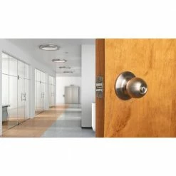 The Trans Atlantic (Taco) HVB cylindrical entry knob set comes in a stainless steel finish and includes an ANSI strike. This entry door knob has a push button on the interior and a key for the exterior side of the knob, allowing you to leave quickly and re-enter easily. Constructed for durability, this knob set exceeds ANSI standards for Grade 1, making it the perfect fit for commercial, heavy-duty applications. The knob is prepared for any small format interchangeable core installation for the entry cylinder, but the cylinder itself is sold separately.