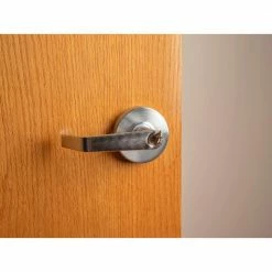 The Trans Atlantic (Taco) LSV Saturn cylindrical classroom leverset comes in a brushed chrome finish and includes an ANSI strike. This classroom door handle has a cylinder on the outside of the door so teachers cannot be locked out from the inside of the classroom. From the inside, the door is always unlocked so students can’t get locked in. This leverset is ADA compliant and exceeds ANSI standards for Grade 2, making it the perfect fit for commercial, standard duty applications. The lever is prepared for any small format interchangeable core installation for the classroom cylinder, but the cylinder itself is sold separately. It includes all necessary hardware and instructions, resulting in an easy installation process.