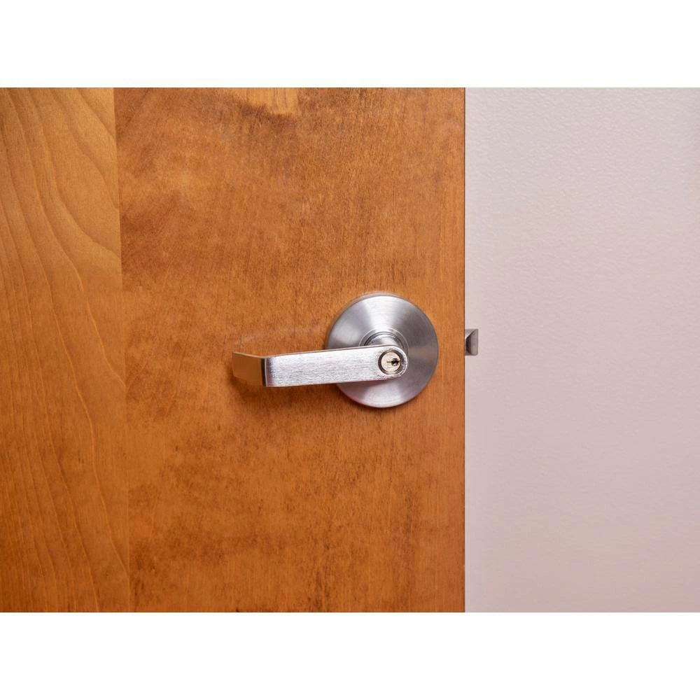 The Trans Atlantic (TACO) LSV Saturn cylindrical storeroom leverset comes in a brushed chrome finish and includes an ANSI strike. This storeroom door handle always requires a key to open the door from the outside, the inside remains unlocked. This leverset is ADA compliant and exceeds ANSI standards for Grade 2, making it the perfect fit for commercial, standard duty applications.